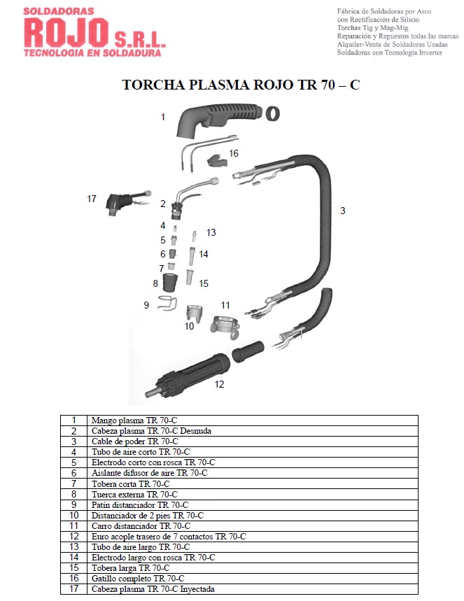 Electrodo largo Plasma CB70 Fig. Nº 14